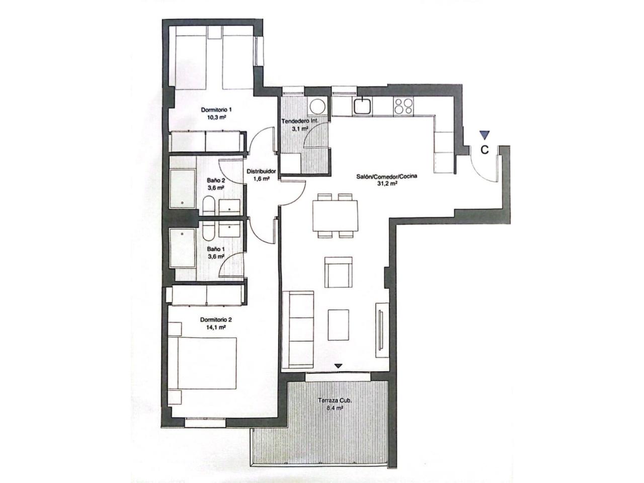 Zona de día: - Amplio salón-comedor con grandes ventanales y acceso directo a una terraza de 8 m² con vistas al mar, perfecta para disfrutar del clima y la tranquilidad. - Cocina completamente equipada con electrodomésticos integrados y acabados de alta calidad. - Cuarto de lavado/solana independiente, con lavadora y secadora, muy práctico para el día a día.